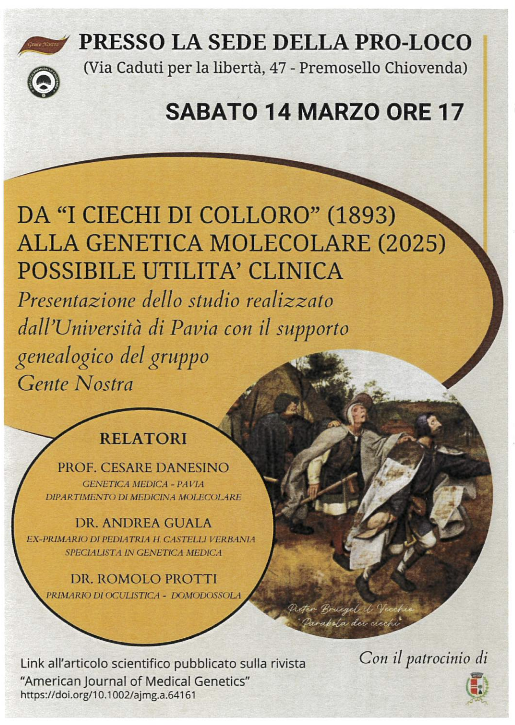 Presentazione dello studio realizzato dall'Università di Pavia con il supporto genealogico del gruppo Gente Nostra